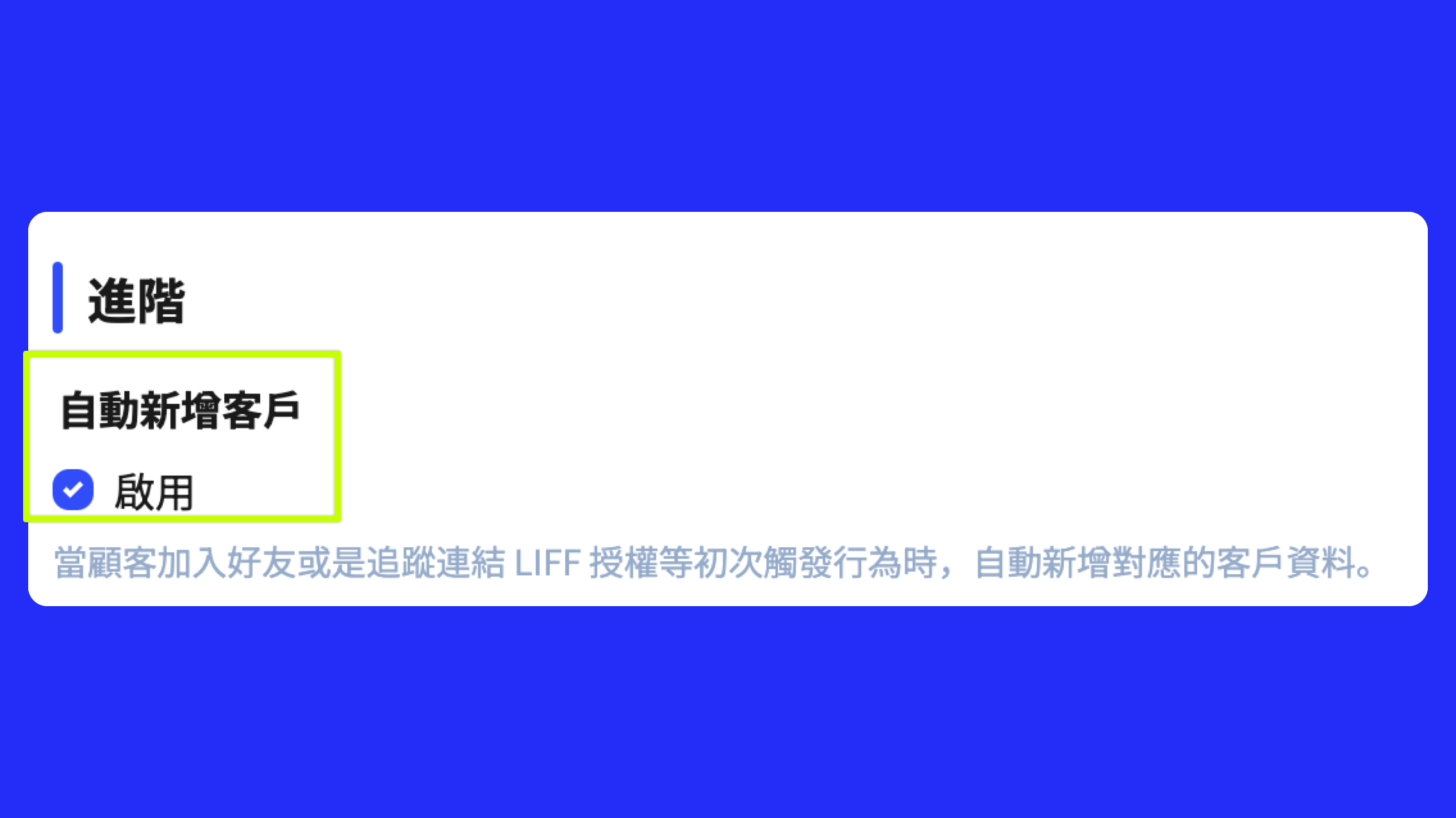 ### 步驟二：啟用「自動新增客戶」功能